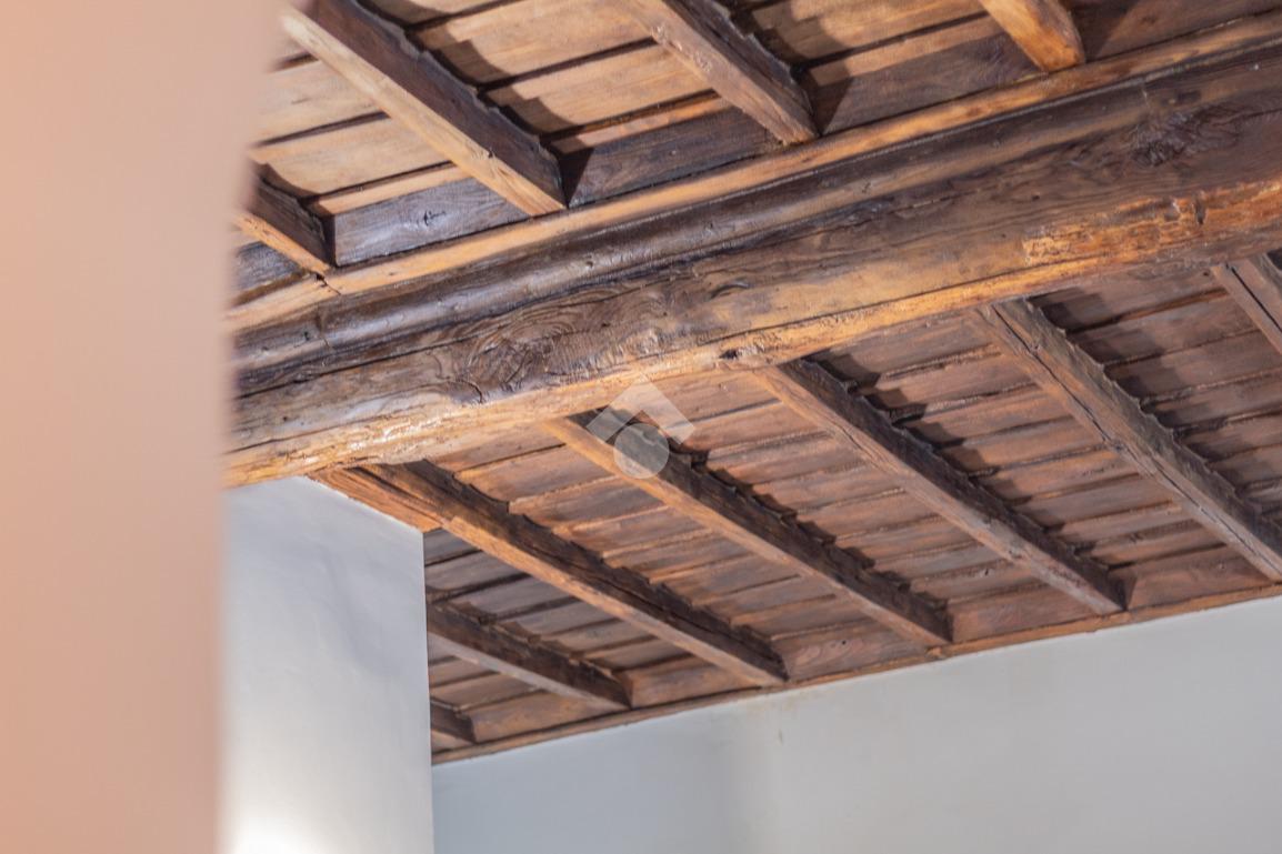 L’abitazione, che si sviluppa interamente su un unico livello, è valorizzata da travi in legno a vista, pavimenti in cotto e dettagli caratteristici. La zona giorno open space comprende cucina in muratura a vista, ampio salone e camino originale in pietra, creando un ambiente caldo e accogliente.