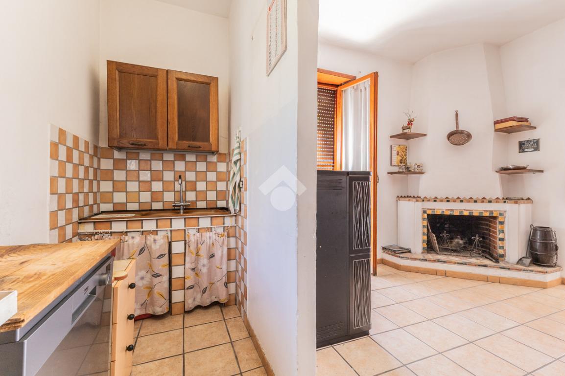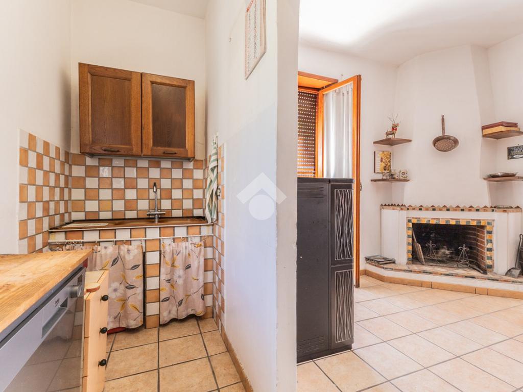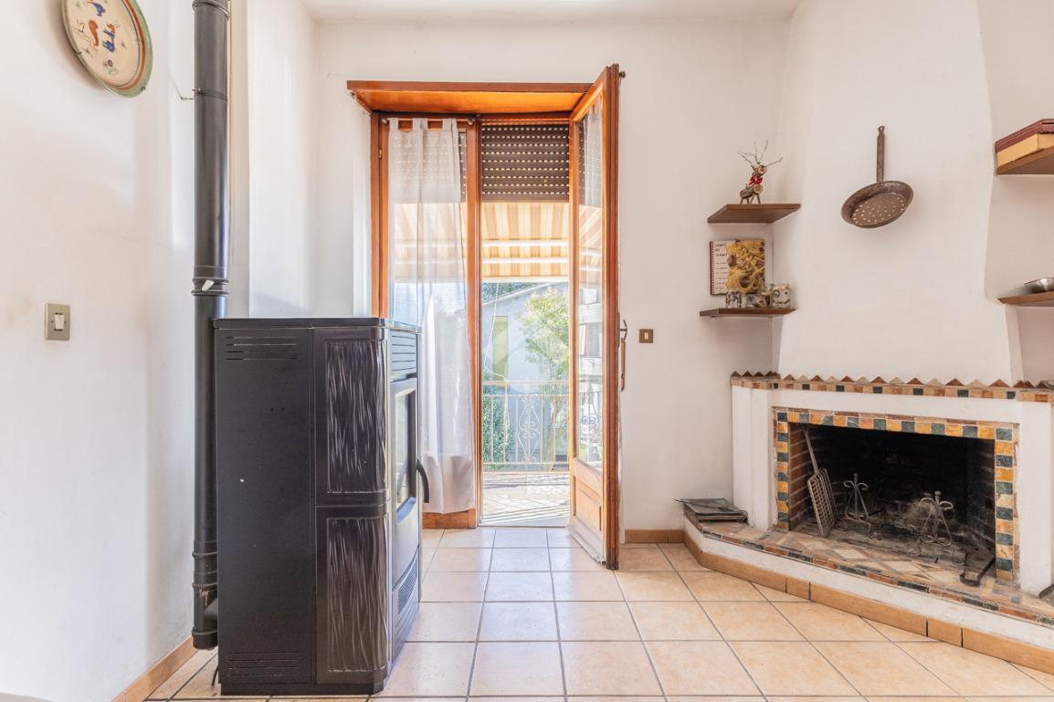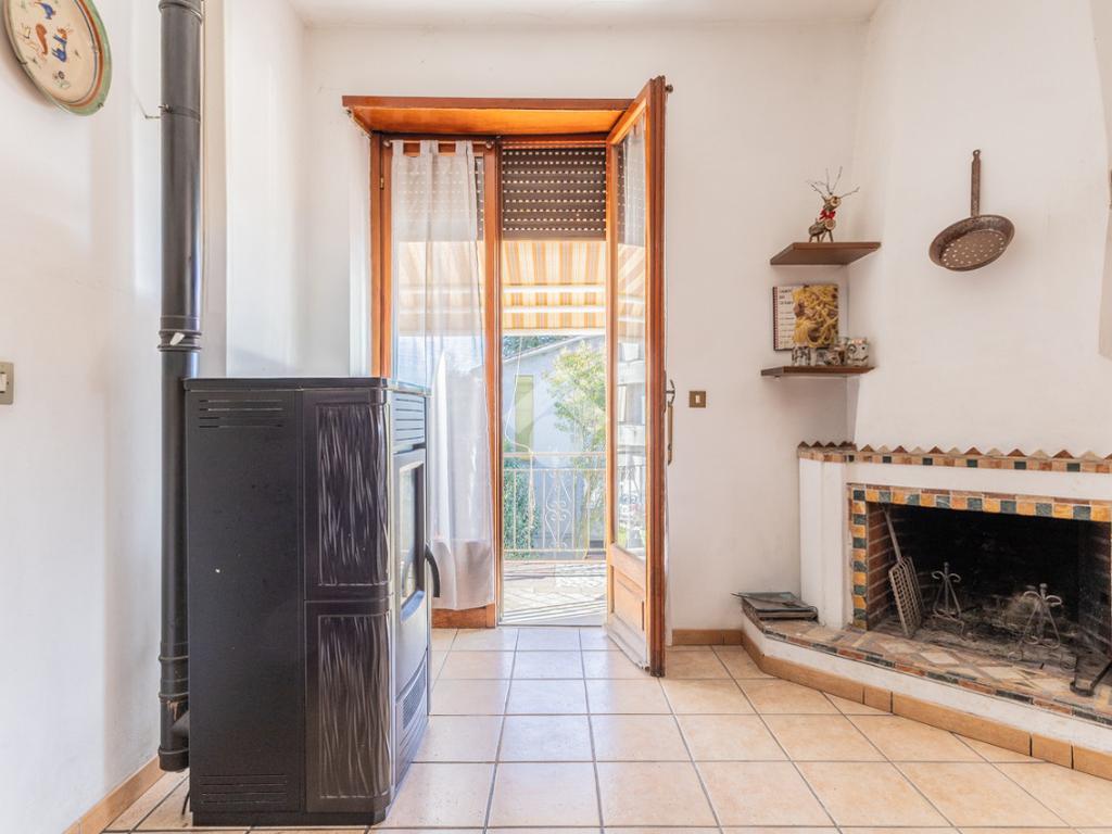 Cucina abitabile con camino con accesso a balcone vivibile