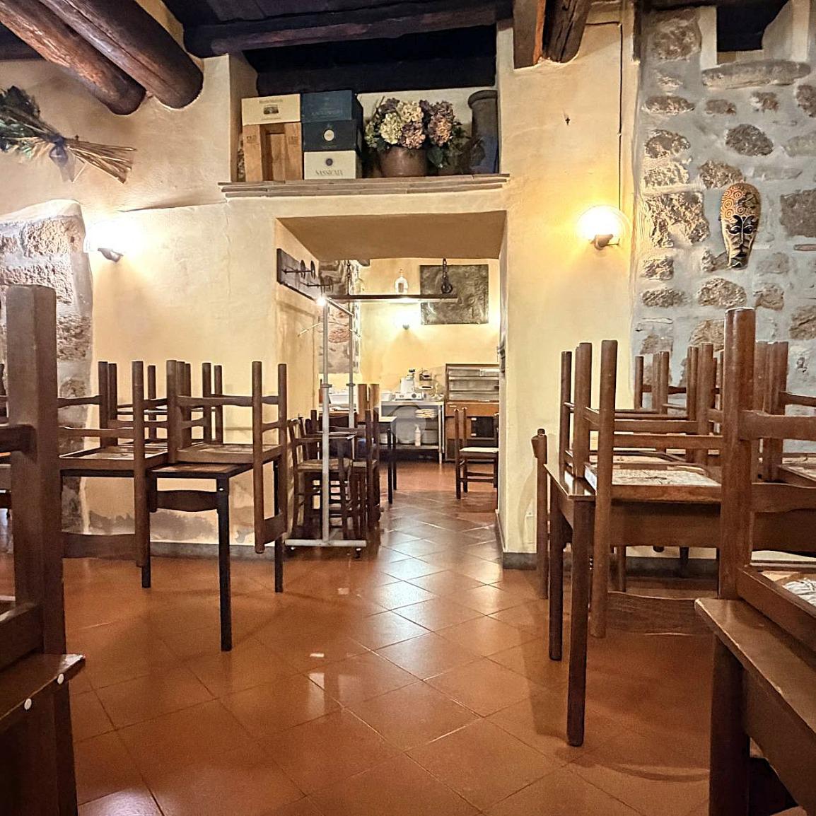 L’immobile, recentemente adibito a ristorante, si apre su una grande sala caratteristica impreziosita da travi in legno a vista e da un suggestivo camino, elemento di forte richiamo sia estetico che funzionale, ideale anche per cucinare e creare un’esperienza conviviale e tradizionale. Il bancone all'ingresso completa l’ambiente rendendolo accogliente e pronto ad accogliere la clientela. La sala può ospitare comodamente tra i 60 e gli 80 coperti interni, perfetta per una trattoria tipica, un ristorante o un locale dal concept ricercato.