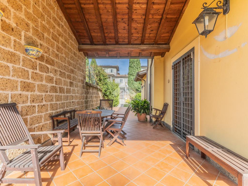 Al piano principale troviamo un ampio salone con grande finestra che si apre su un terrazzo collegato all’ampio portico laterale, perfetto per momenti di relax all’aperto. Nello stesso livello sono presenti anche un secondo ambiente attualmente adibito a salotto — ideale anche come camera al piano —, una cucina comoda e un bagno.